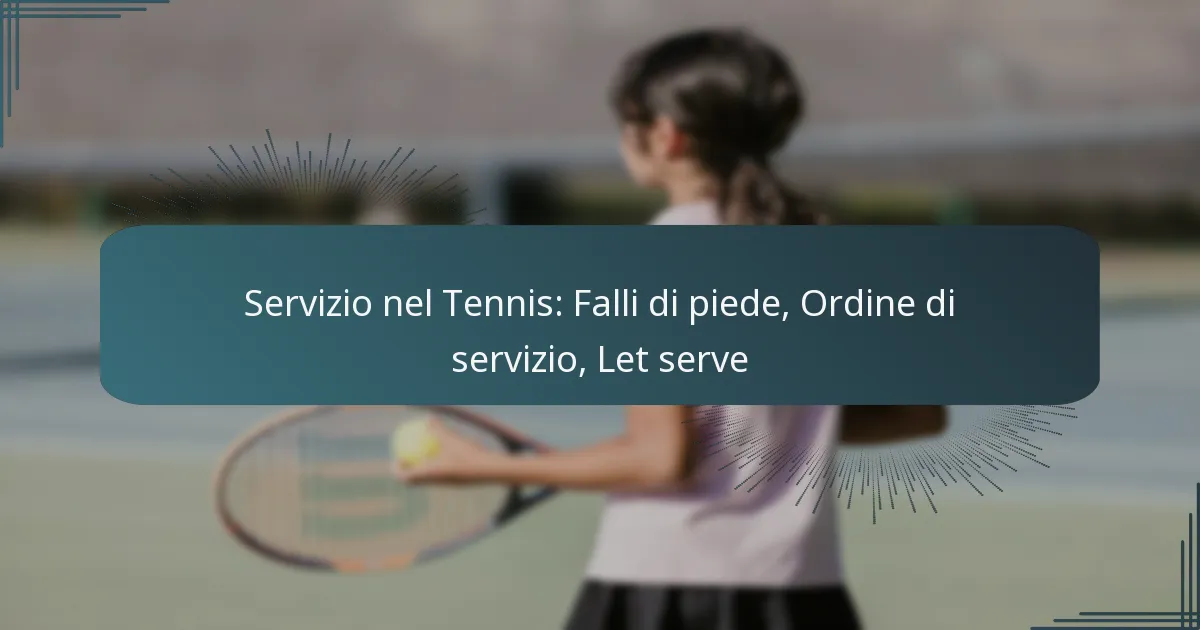 Il servizio nel tennis coinvolge diverse regole critiche che possono influenzare significativamente le prestazioni di un giocatore. Gli aspetti chiave includono i falli di piede, che si verificano quando un giocatore oltrepassa la linea di fondo prima di servire, l’importanza di mantenere l’ordine di servizio corretto durante le partite e il concetto di let serve, dove una palla che colpisce la rete consente comunque un nuovo servizio se atterra nella casella corretta. Comprendere queste regole è essenziale per i giocatori per migliorare la loro tecnica di servizio e la strategia di gioco complessiva.