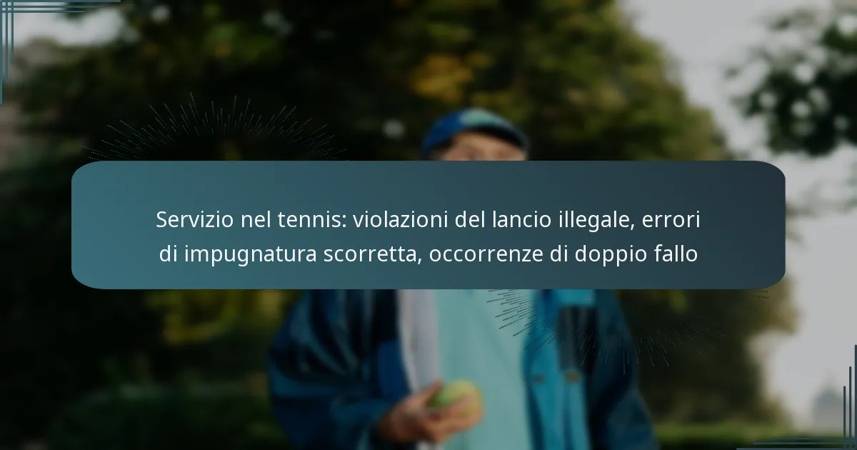 Il servizio nel tennis è un’abilità fondamentale che può essere ostacolata da vari errori, tra cui violazioni del lancio illegale, errori di impugnatura e doppi falli. Le violazioni del lancio illegale interrompono il processo di servizio e possono comportare penalità, mentre un’impugnatura scorretta può compromettere l’accuratezza e la potenza del servizio di un giocatore. Inoltre, i doppi falli, che si verificano quando entrambi i tentativi di servizio falliscono, possono portare a punti persi, rendendo essenziale per i giocatori comprendere e affrontare questi problemi comuni per migliorare le loro prestazioni nel servizio.