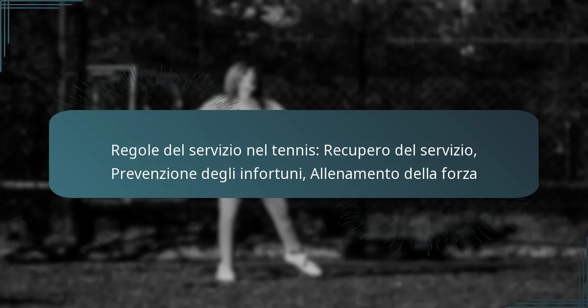 Le regole del servizio nel tennis sono essenziali per garantire un gioco equo, dettagliando come deve essere eseguito un servizio, inclusa la corretta posizione dei piedi e la rotazione. Per mantenere prestazioni ottimali e prevenire infortuni, tecniche di recupero efficaci, idratazione e nutrizione sono vitali dopo il servizio. Inoltre, la consapevolezza delle comuni lesioni associate al servizio può aiutare i giocatori a implementare strategie preventive e a cercare trattamenti tempestivi quando necessario.